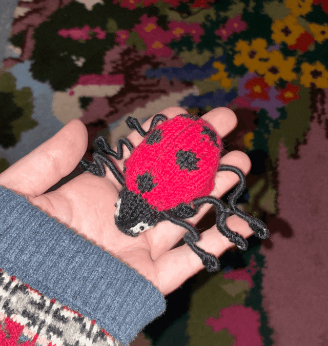 One year, her and I both dressed up as ladybugs for halloween without meaning to match! So here's a ladybug I knit for her. It was a surprisingly quick project, took me 1 day. First time doing stranded colour work