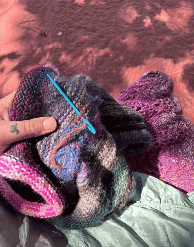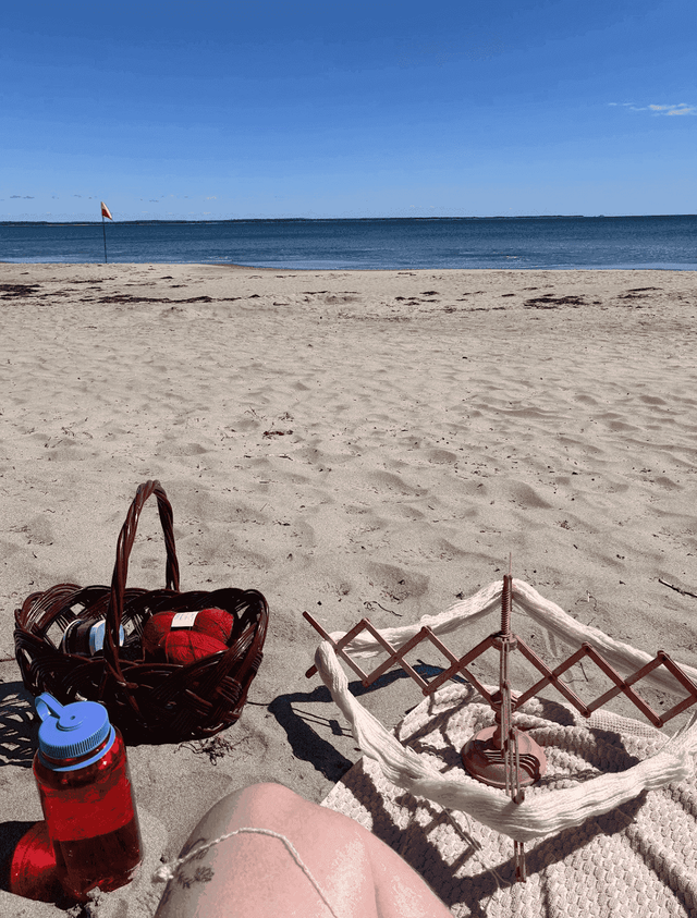 I borrowed Adèsse’s swift and balled some yarn on the beach. Thinking i will try out some solar-fast on this white yarn made by a sheep named Travis.