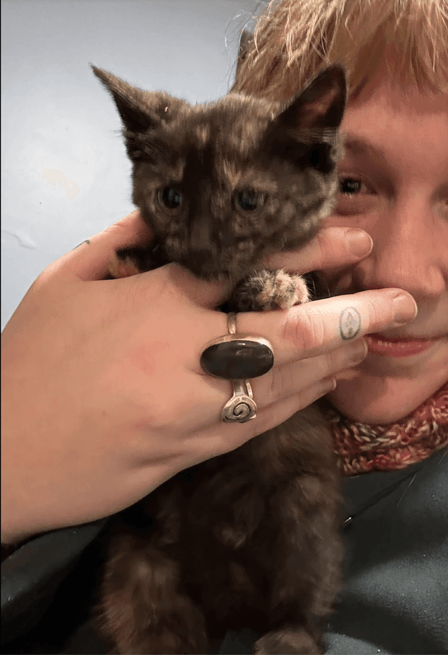 one day I had a hard morning and went out in the field and laid myself over Spaghetti the horse, then Gina arrived with the smallest kitten I've ever seen. she told me about how all the horses had sparkled with frost that morning